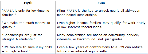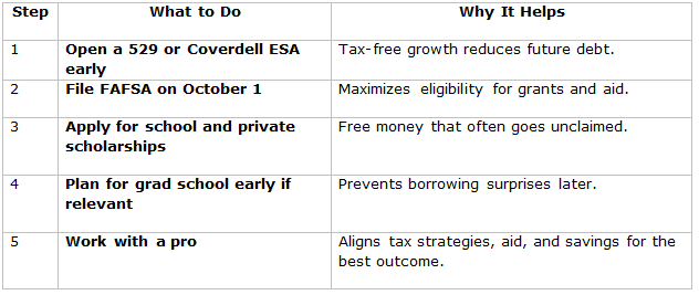 College costs feel daunting when you don’t see the roadmap. But with the right mix of proactive saving (529s, Coverdells), strategic aid (FAFSA, Pell Grants, school-based programs), and careful borrowing, it’s entirely possible to make higher education affordable.